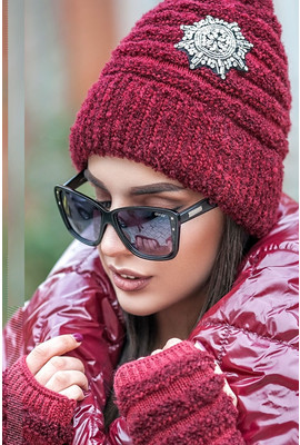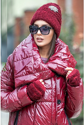 Изображения Комплект из трикотажа-букле (шапка+митенки) - 223 бордовый - Интернет-магазин - ELENKA