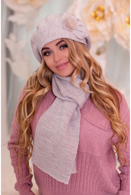 ВЯЗАНЫЙ БЕРЕТ И ШАРФ "АРМАНДА" - 6001-10 светлый кофе
