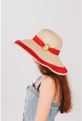 Шляпка от солнца с бантом на боку - 168-02.13 белый+красный