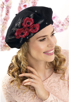 Чёрный берет с вышивкой "маки" "Фелисьянета" (Felisjaneta) - 018