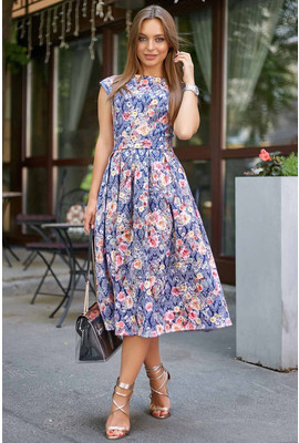 Отзывы Полуприталенное платье с пышной юбкой из жаккарда "Камилла" - 1177.3580 тёмно-синий - Интернет-магазин - ELENKA