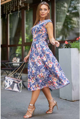 ЦВЕТ темно синий ФАСОН полупритал,с пышной юбкой МАТЕРИАЛ жаккард СЕЗОН лето