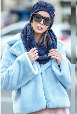 КРАСИВЫЙ ЖЕНСКИЙ КОМПЛЕКТ ШАПКА-ШАРФ ИЗ БУКЛЕ+ФЛИС - 227 синий - Интернет-магазин - ELENKA