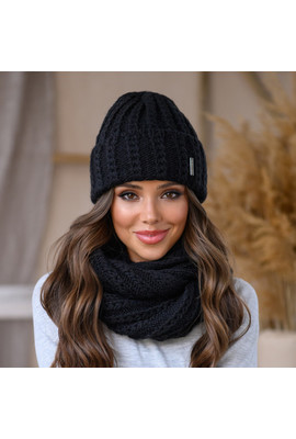 ЖЕНСКИЙ ВЯЗАНЫЙ НАБОР "СИМОНА" (ШАПКА И ХОМУТ) - 463-002 чёрный