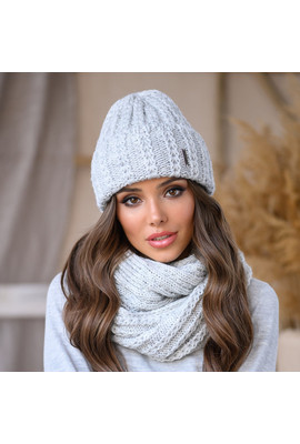 ЖЕНСКИЙ ВЯЗАНЫЙ НАБОР "СИМОНА" (ШАПКА И ХОМУТ) - 463-035 светло-серый