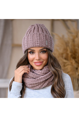 Женский вязаный набор Симона, шапка и хомут 463-070 тёмная пудра
