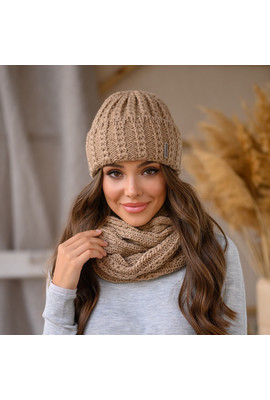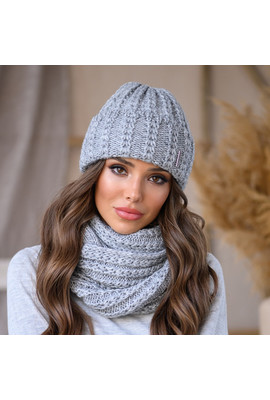 ЖЕНСКИЙ ВЯЗАНЫЙ НАБОР "СИМОНА" (ШАПКА И ХОМУТ) - 463-017 серый