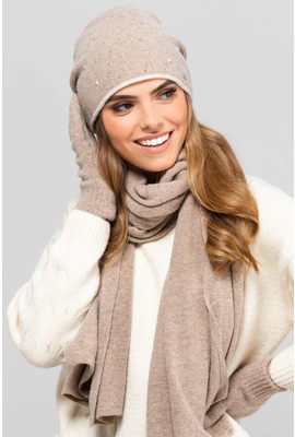 Женская двойная шапка-бандана с драпировкой складок сзади. Украшена россыпью бусин, страз и фирменной шильдой. Размер: 56-59 см Состав: 80% шерсть, 20% полиамид Страна производитель: Польша