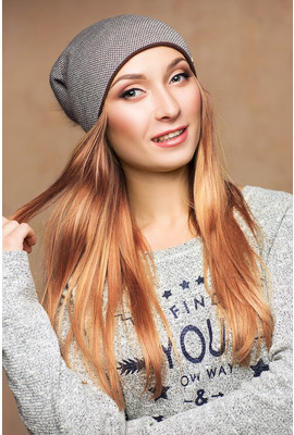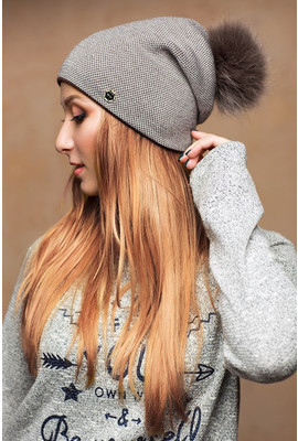КРАПОВАЯ ЖЕНСКАЯ ШАПКА С ПОМПОНОМ - 17170 ШОКОЛАД