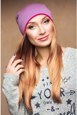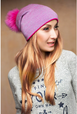 КРАПОВАЯ ЖЕНСКАЯ ШАПКА С ПОМПОНОМ - 17167 малина
