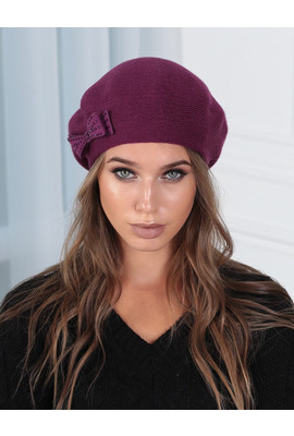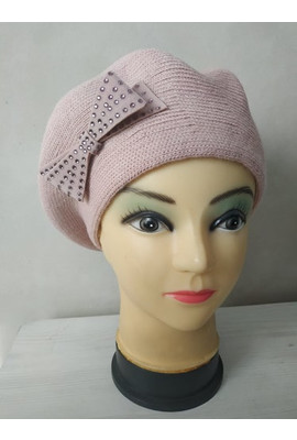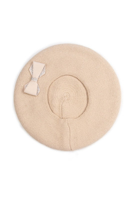 ДВОЙНОЙ ВЯЗАНЫЙ БЕРЕТ "БАНТ" - 334-010 светло-бежевый