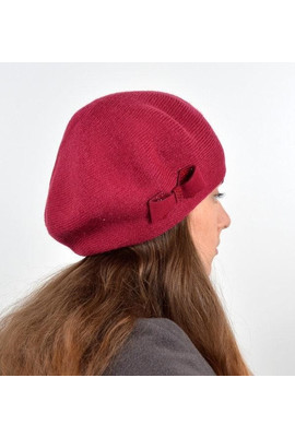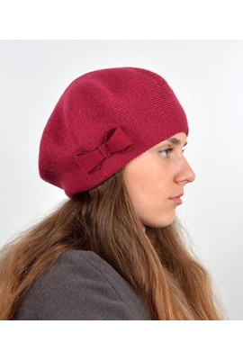 ДВОЙНОЙ ВЯЗАНЫЙ БЕРЕТ "БАНТ" - 353-042 бордо
