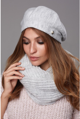 БЕРЕТ С БУСИНОЙ "КИМ" - 10-01 светло-серый