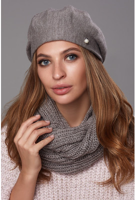 БЕРЕТ С БУСИНОЙ "КИМ" - 10-01 тёмно-бежевый