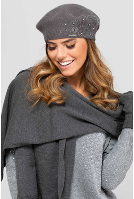КРАСИВЫЙ БЕРЕТ С БУСИНАМИ "ВИТОРИЯ" (VITORIA) - 010.07 графит