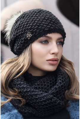 КРАСИВЫЙ КОМПЛЕКТ ВЯЗКОЙ "СОТЫ" "КЛАРК" (ШАПКА И ХОМУТ) - 4723-8 чёрный