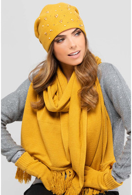 Главная страница Женские шапки ТМ Kamea Шапка, украшенная бусинами Kamea "Террасса" (Terrassa) - 25 горчица