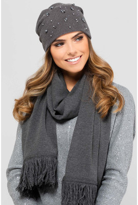 Женская двойная шапка-бандана. Украшена бусинами и стразами. Размер: 56-59 см Состав: 40%акрил, 25%вискоза, 20%шерсть, 15%эластан Страна производитель: Польша