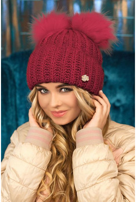 ЗИМНЯЯ ШАПКА С ДВУМЯ ИГРИВЫМИ БУБОНАМИ-УШКАМИ "ЛЮДИСИЯ" - 4377 бордовый