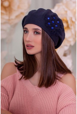 БЕРЕТ С КРАСИВЫМ УКРАШЕНИЕМ "КАЛЕРИЯ" - 6000 тёмно-синий