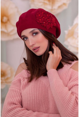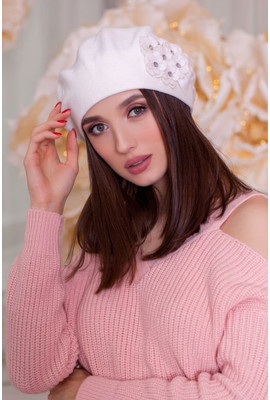 • «Калерия» - это невероятно уютный и легкий женский берет для сезона весна/осень. Головной убор способен задать тон и настроение Вашего образа, именно поэтому при его выборе стоит задуматься что Вы бы хотели подчеркнуть или дополнить этим аксессуаром. Помимо отличных внешних данных, берет должен быть теплым. В состав данной модели входит шерсть, которая согревает в прохладную погоду и превосходно держит форму на голове. Полотно выполнено из мелкой плотной вязки, а внутренний отворот в 7 см служит дополнительной защитой от ветра. Нежная аппликация, состоящая из 7 цветков, завершат композицию и подчеркивает женственную и романтичною натуру обладательницы этого беретика.