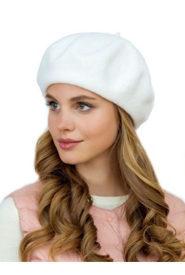КЛАССИЧЕСКИЙ БЕРЕТ ИЗ ВАЛЯНОЙ ШЕРСТИ БЕЗ УКРАШЕНИЙ "ФЛОРА" - 000 белый - Интернет-магазин - ELENKA