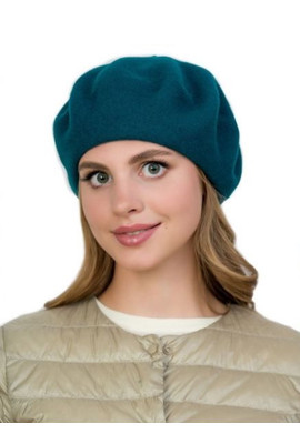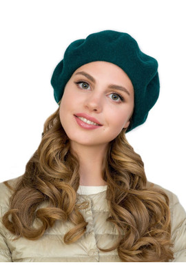 КЛАССИЧЕСКИЙ БЕРЕТ ИЗ ВАЛЯНОЙ ШЕРСТИ БЕЗ УКРАШЕНИЙ "ФЛОРА" 986 изумрудный - Интернет-магазин - ELENKA