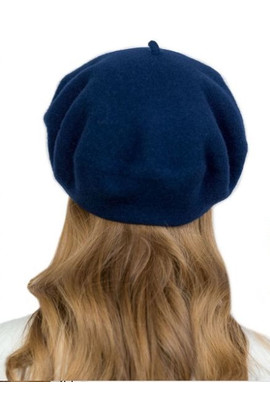 Изображения КЛАССИЧЕСКИЙ БЕРЕТ ИЗ ВАЛЯНОЙ ШЕРСТИ БЕЗ УКРАШЕНИЙ "ФЛОРА" - 161 тёмно-синий - Интернет-магазин - ELENKA