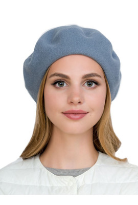 КЛАССИЧЕСКИЙ БЕРЕТ ИЗ ВАЛЯНОЙ ШЕРСТИ БЕЗ УКРАШЕНИЙ "ФЛОРА" - 352 серый туман - Интернет-магазин - ELENKA