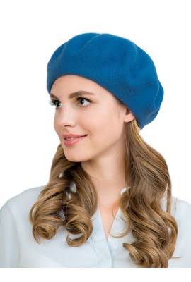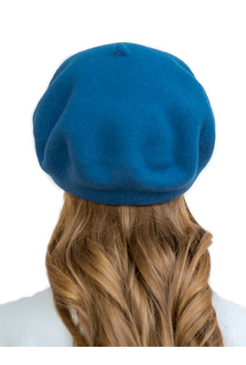 Изображения КЛАССИЧЕСКИЙ БЕРЕТ ИЗ ВАЛЯНОЙ ШЕРСТИ БЕЗ УКРАШЕНИЙ "ФЛОРА" - 025 синий - Интернет-магазин - ELENKA