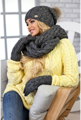 Главная страница Женские шапки Осень-Зима Тёплый зимний комплект-тройка «АФИНА» - 4336-38 тёмно-серый