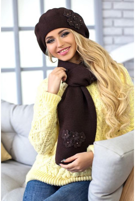Молодежный женский зимний комплект «Фортуна» - оригинальные изделия с декором ручной работы. В качестве украшения производители используют 5 цветков ручной работы. Ими украшены шарф и берет комплекта. Головной убор мелкой вязки. В состав комплекта вход...