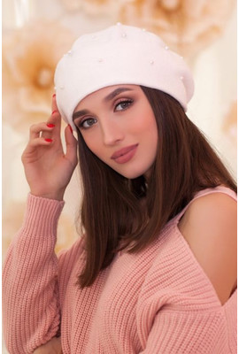 Берет расшитый мелкими бусинами Флорида 6006 белый