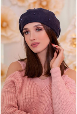 Главная страница Женские шапки Осень-Зима БЕРЕТ, РАСШИТЫЙ МЕЛКИМИ БУСИНАМИ "ФЛОРИДА" - 6006 джинс