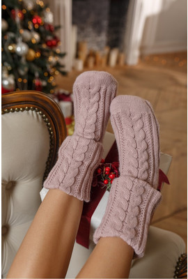 Изображения Вязаные носки узором косы 001 пудра, р. 39-40 - Интернет-магазин - ELENKA
