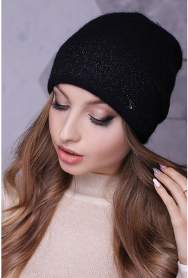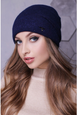 КРАСИВАЯ ЖЕНСКАЯ ШАПОЧКА ИЗ АНГОРЫ "КЛЭР" - 0296 синий