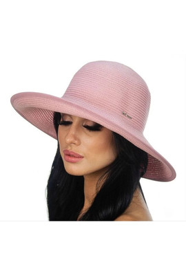 Женская шляпа Del Mare Модель: 038A Цвет: 23 Состав: capron, polyester Ширина поля: 11 см. Диаметр шляпы: 37 см. Высота тульи: 10 см. Размер: 56-58 Цвет основной: пудра. Детали: моделируемое поле