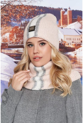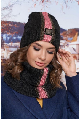 ЖЕНСКИЙ ВЯЗАНЫЙ КОМПЛЕКТ "АНЖЕЛИНА" (ШАПКА+ШАРФ-ХОМУТ) - 4714-7 чёрный