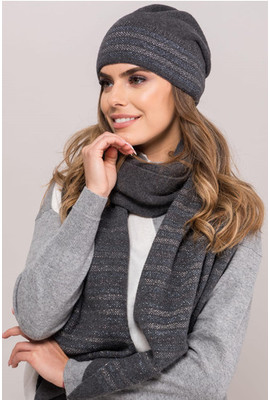 ВЯЗАНАЯ ШАПКА С ЛЮРЕКСОВОЙ ВСТАВКОЙ "КОРДОВА" (KORDOWA) - 12 тёмно-синий