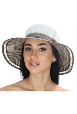 ЛЕТНЯЯ ДВУХЦВЕТНАЯ ШЛЯПА ТМ DEL MARE - 177-02.32 белый+коричневый - Интернет-магазин - ELENKA