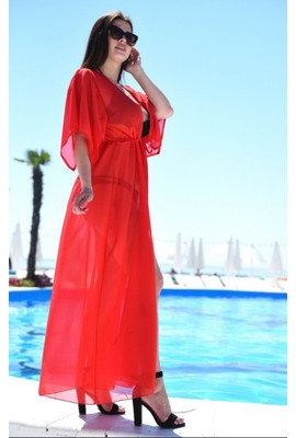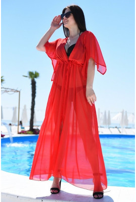 ПЛЯЖНАЯ ТУНИКА В ПОЛ БАТАЛ - 8041-19 красный