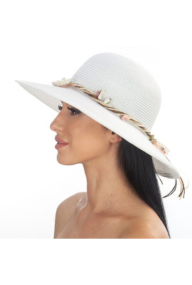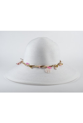 Белая шляпа с оригинальным украшением из ракушек - 180-02