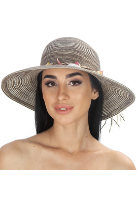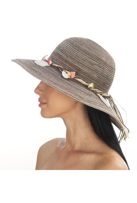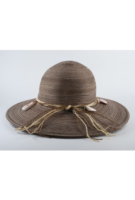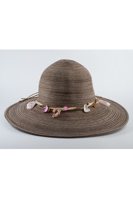 КОРИЧНЕВАЯ ШЛЯПА С ОРИГИНАЛЬНЫМ УКРАШЕНИЕМ ИЗ РАКУШЕК - 180-32
