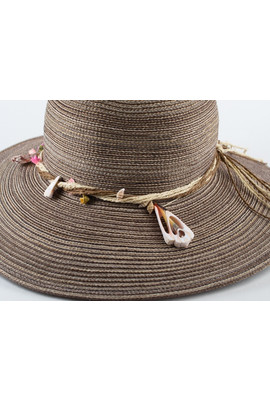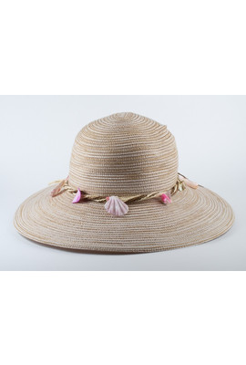 БЕЖЕВАЯ ШЛЯПА С ОРИГИНАЛЬНЫМ УКРАШЕНИЕМ ИЗ РАКУШЕК - 180-10