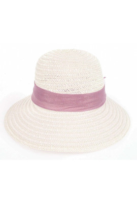 БЕЛЫЙ ЛЕТНИЙ КАПОР С СИРЕНЕВЫМ БАНТОМ - 008-02.34