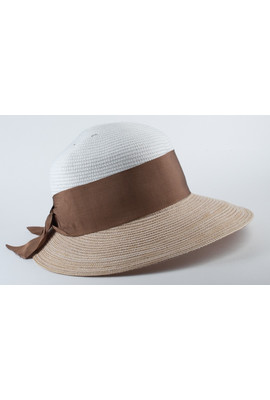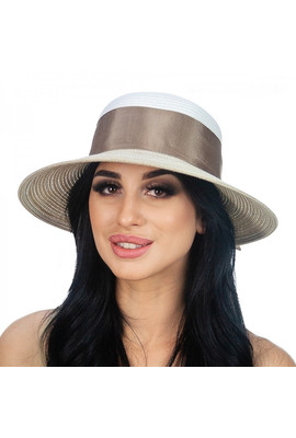 Женская шляпа с ассиметричным полем - 170-02.10 белый+бежевый