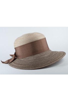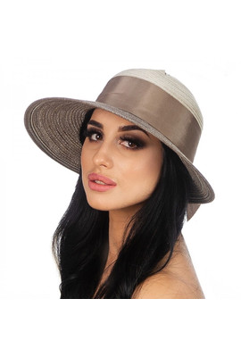 ЖЕНСКАЯ ШЛЯПА С АССИМЕТРИЧНЫМ ПОЛЕМ - 170-10.32 бежевый+коричневый