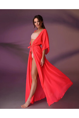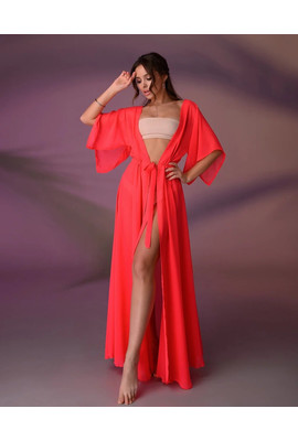Длинная пляжная туника - 001-015 неоновый коралл