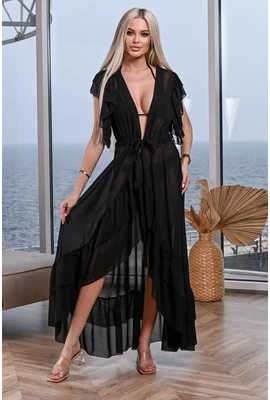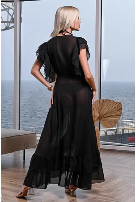 Пляжная длинная туника с воланами - 002-002 черный