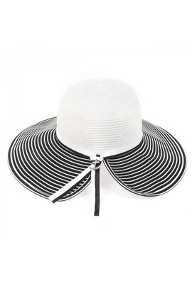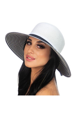 Женская шляпа Del Mare Модель: 159 Цвет: 02.01 Состав: capron, polyester, cotton Ширина поля: 11,5 см. Диаметр шляпы: 41 см. Высота тульи: 9 см. Размер: 56-58 Цвет основной: белый. Цвет дополнительный: чёрный. Аксессуар: лента из капрона с якорем. Дета...
